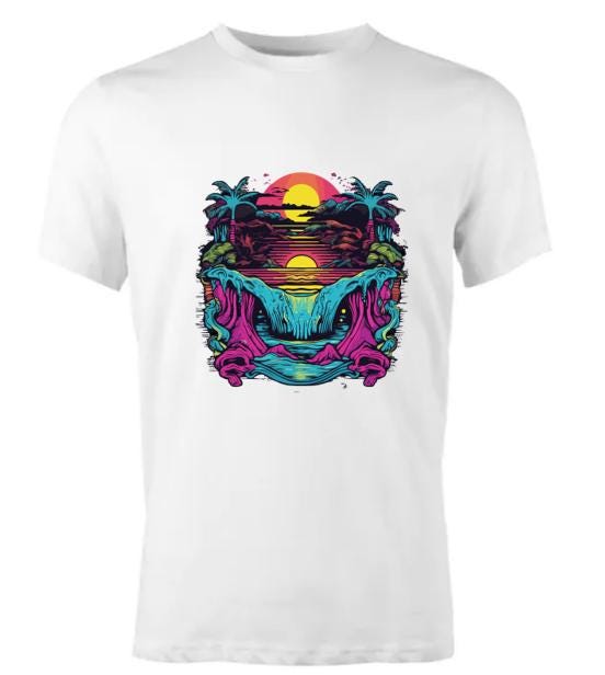 Psychedelic Tropical Sunset T-Shirt/ Colorful Graphic Tee/ Unique Beach Vibes Shirt/ Perfect for Summer